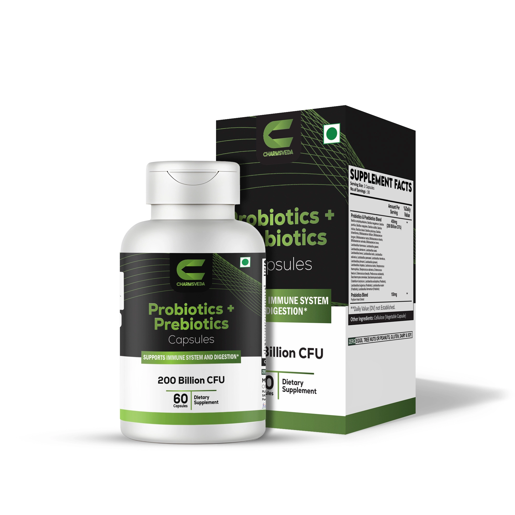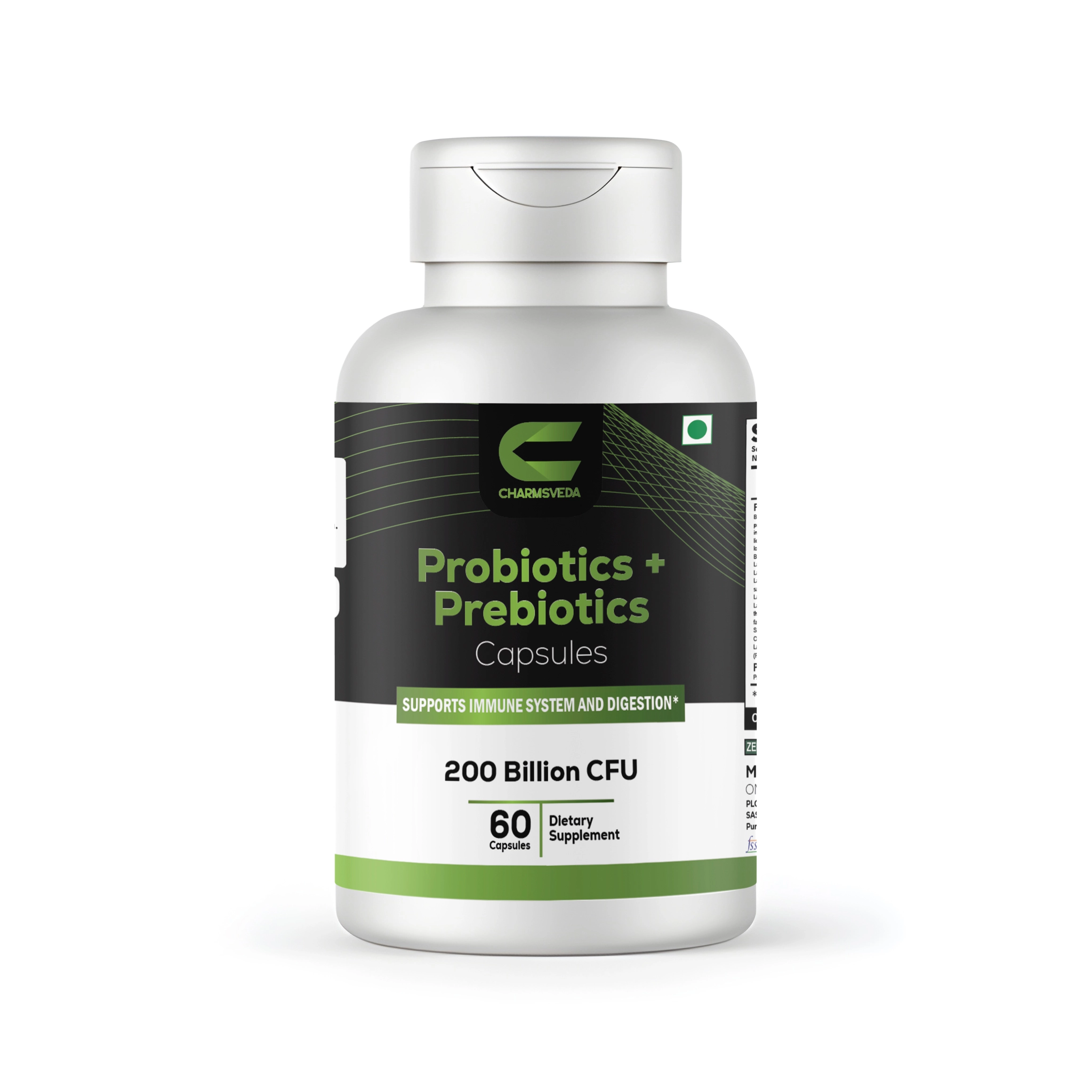 Support your gut and immune system with CHARMSVEDA Probiotics + Prebiotics, a high-potency formula offering 200 Billion CFU and a comprehensive blend of 40+ probiotic, prebiotic, and postbiotic strains. This advanced supplement promotes digestive balance, nutrient absorption, and overall wellness.
